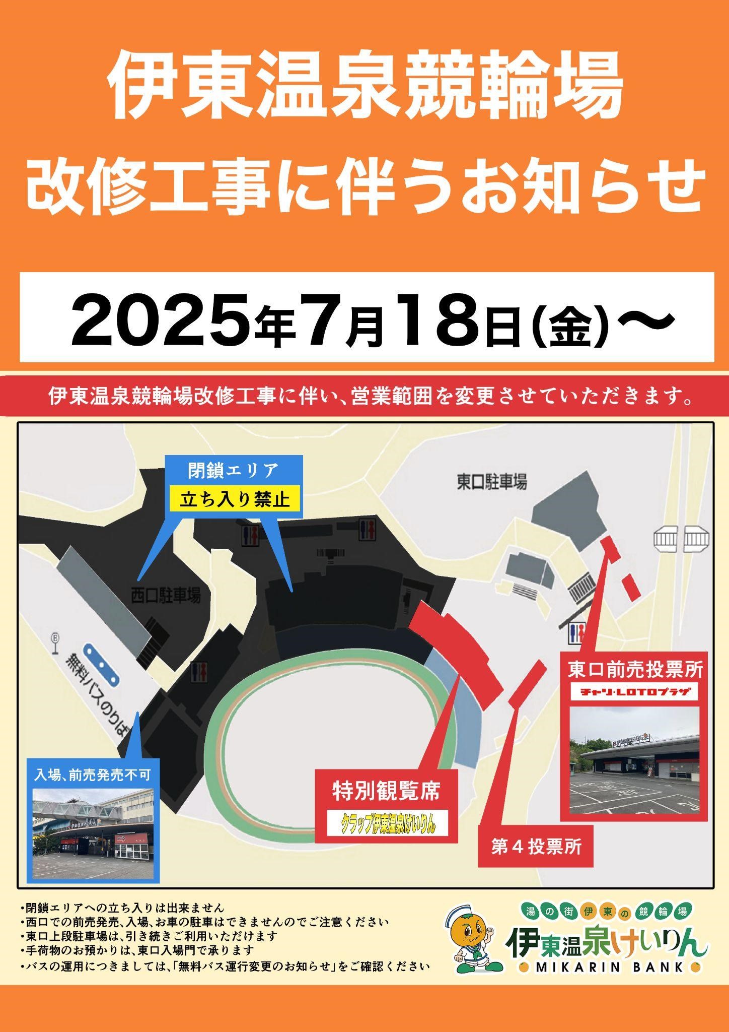 伊東温泉競輪場の再整備にあたり、下記の通りお知らせいたします。