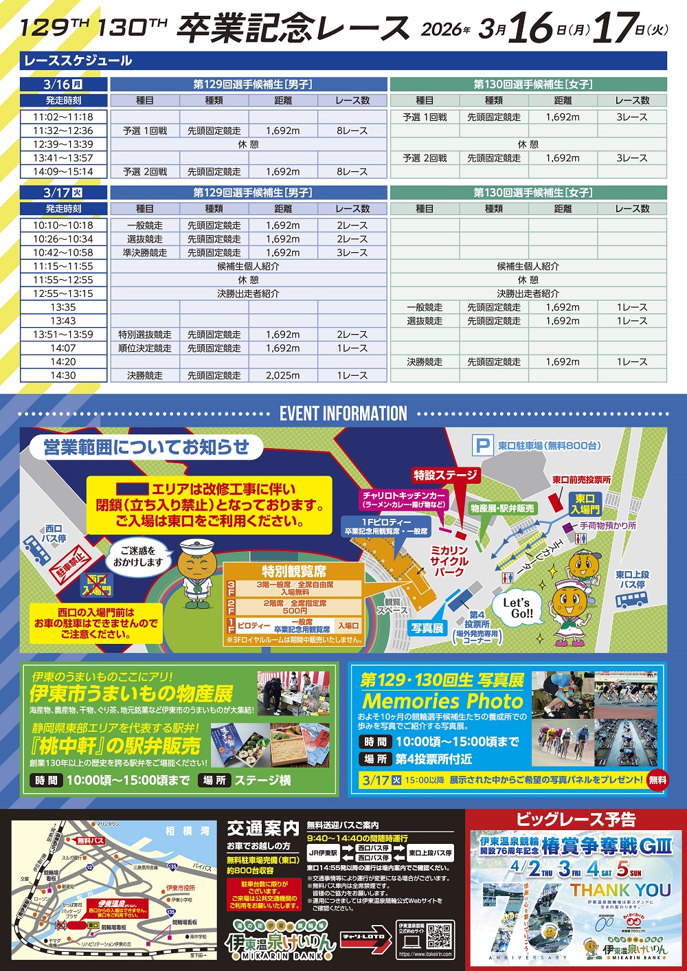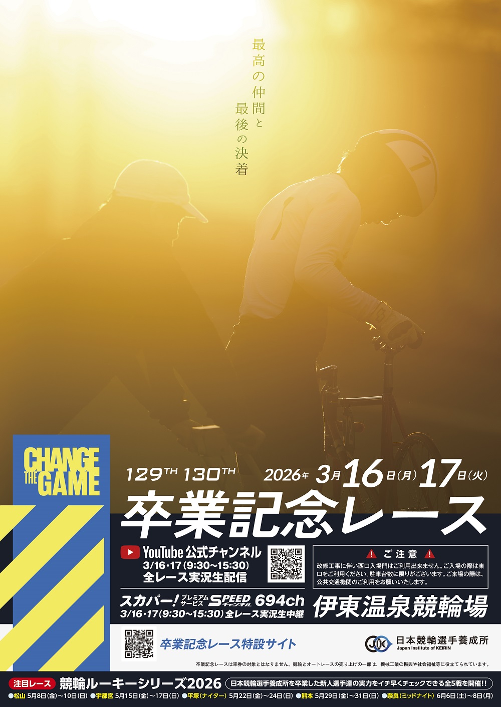 いつも伊東温泉けいりんをご利用いただきありがとうございます。2026年3月16日(月)・17日(火)に伊東温泉競輪にて卒業記念レースが開催されます。